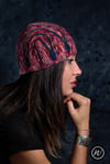 Shown in RiverKnits BFL DK in shades My Heart Bleeds Wine & Sommeliche Nachthimmel [246yd/225m per 100g; 100% BFL]Shown in size 22in/56cm on model with 22.75in/57.75cm circumference head