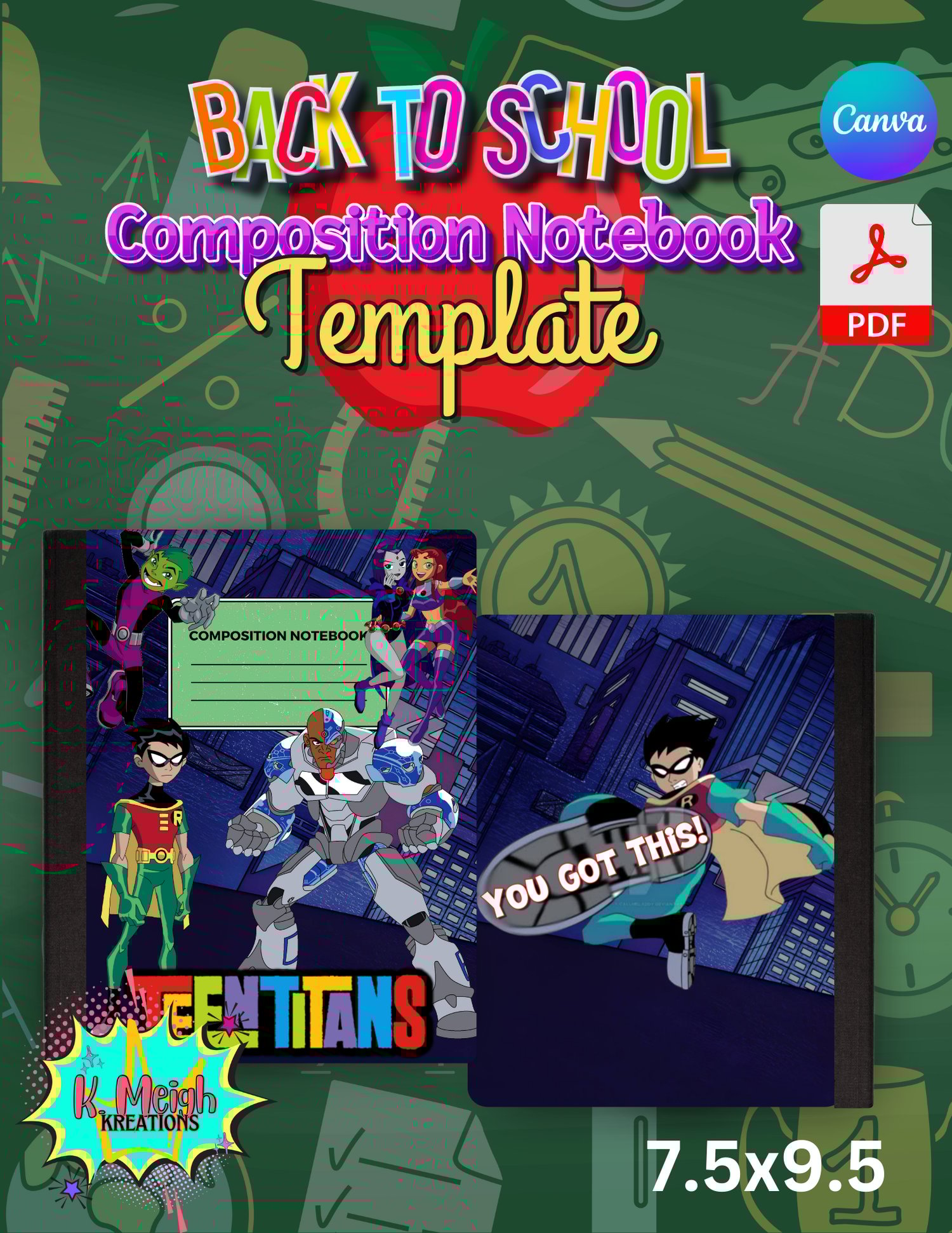 Editable Themed Composition Notebook Template, Canva Editable, PDF File