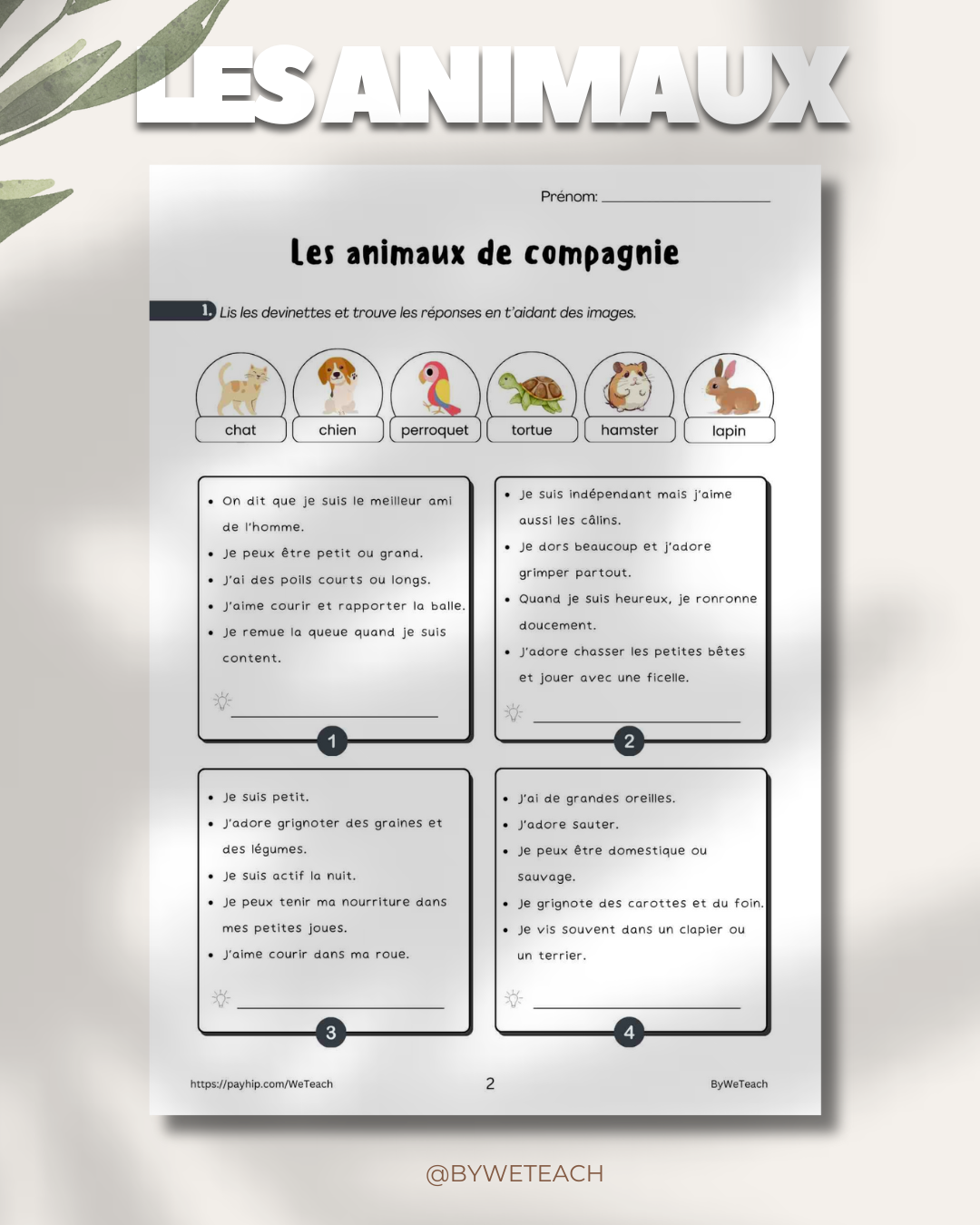 • 16 fiches de lecture avec des devinettes adaptées au niveau des élèves