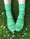 Sock is available in size small (64 stitch cast on), medium (68 stitch cast on) and large (72 stitch cast on).