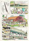 In 2011, I started making my home-made sketchbooks. It's also where I started capturing my daily life in small comic panels in my sketchbook as I went about my day - something I still enjoy practicing years later. This sketchbook is the first in a series of 3, where I kept up this daily life comics journalling from cover to cover. At that time, my main tools were a Bic ballpoint pen and gouache paint in a pill case.