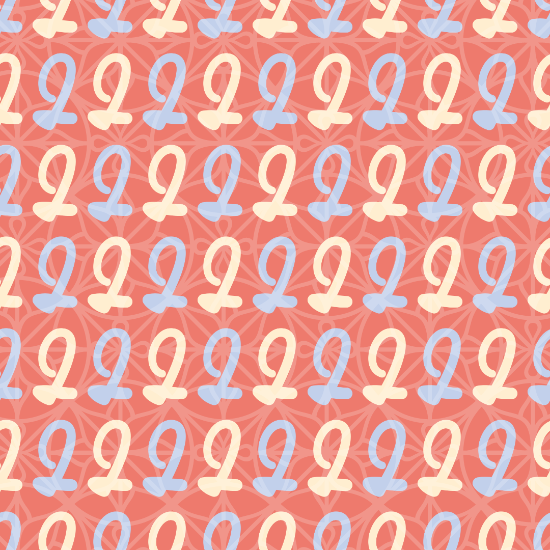 Number one character vector repeat pattern. Hand written type seamless illustration background.