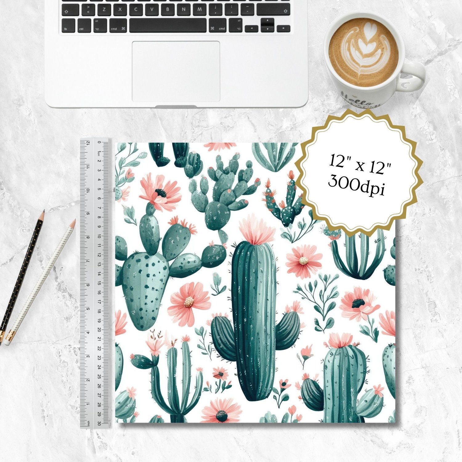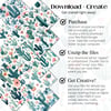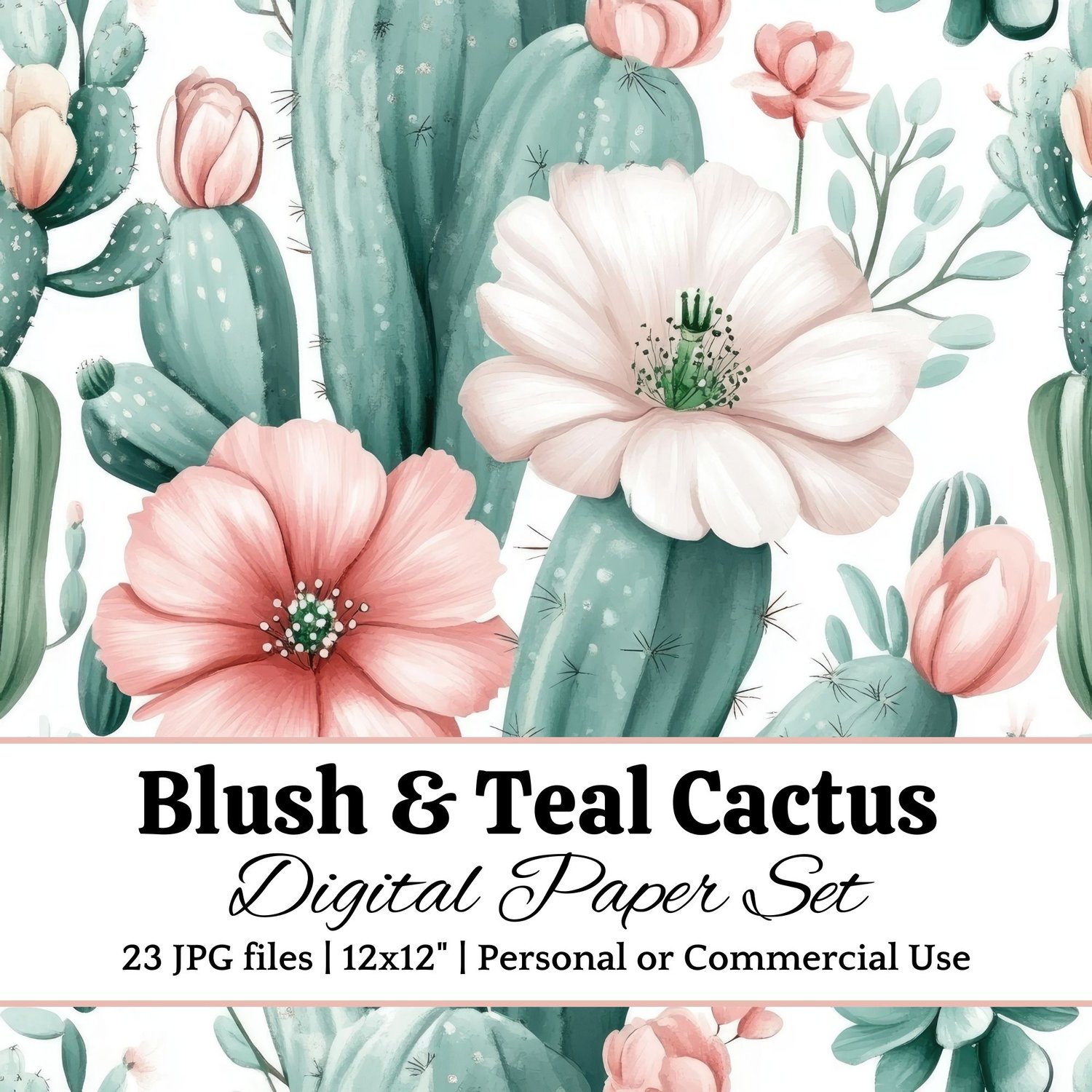 Bring a modern Southwest touch to your designs with this blush and teal cactus digital paper set. Featuring 23 high-resolution JPG files, each 12x12" at 300 DPI, these hand-painted cactus and floral backgrounds are perfect for print or digital use.