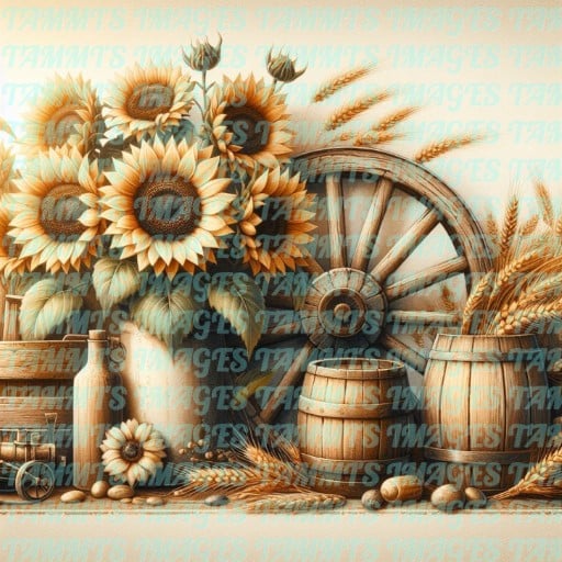 Sunflower Wagon Wheel Whisky Barrel (1)