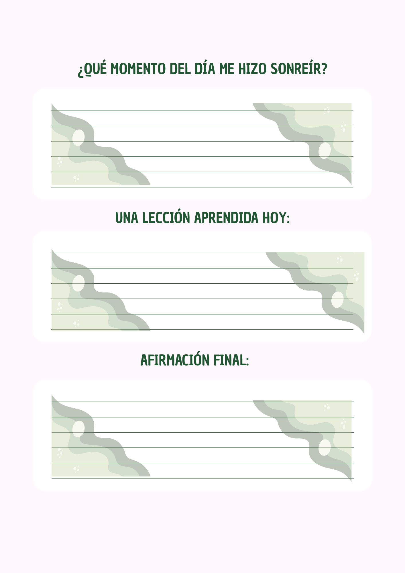 - Reflexión de Noche: Un ejercicio para cerrar el día enfocada en lo positivo.