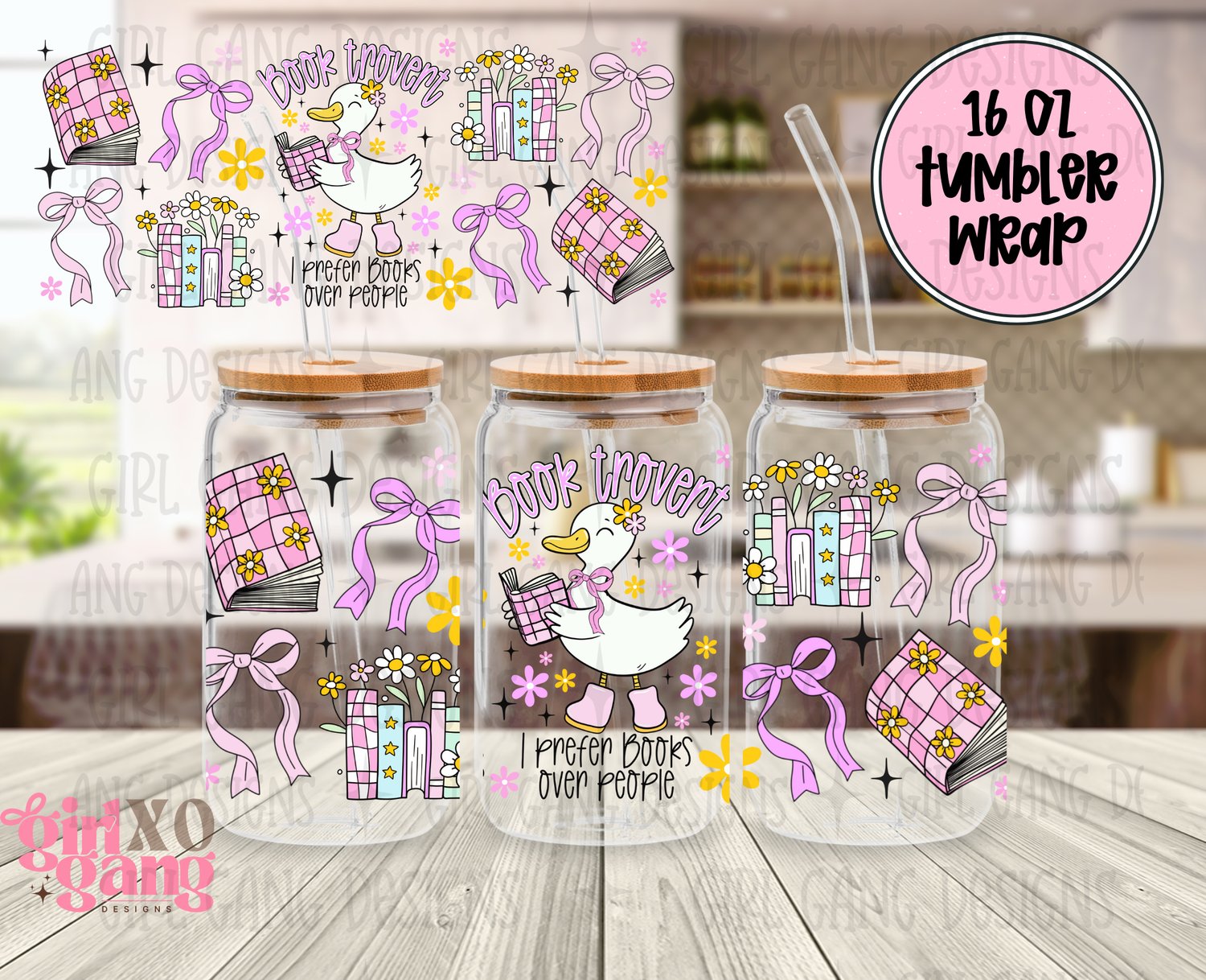 Booktrovert silly goose 16 oz glass can tumbler wrap PNG Book goose