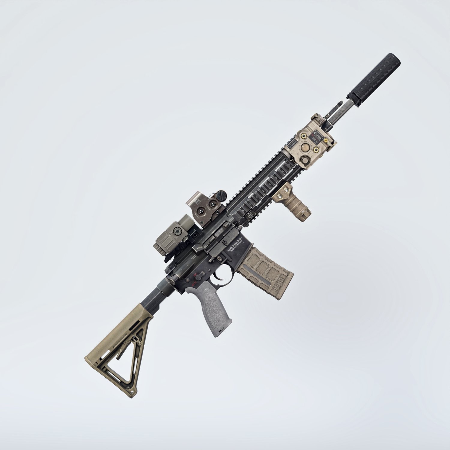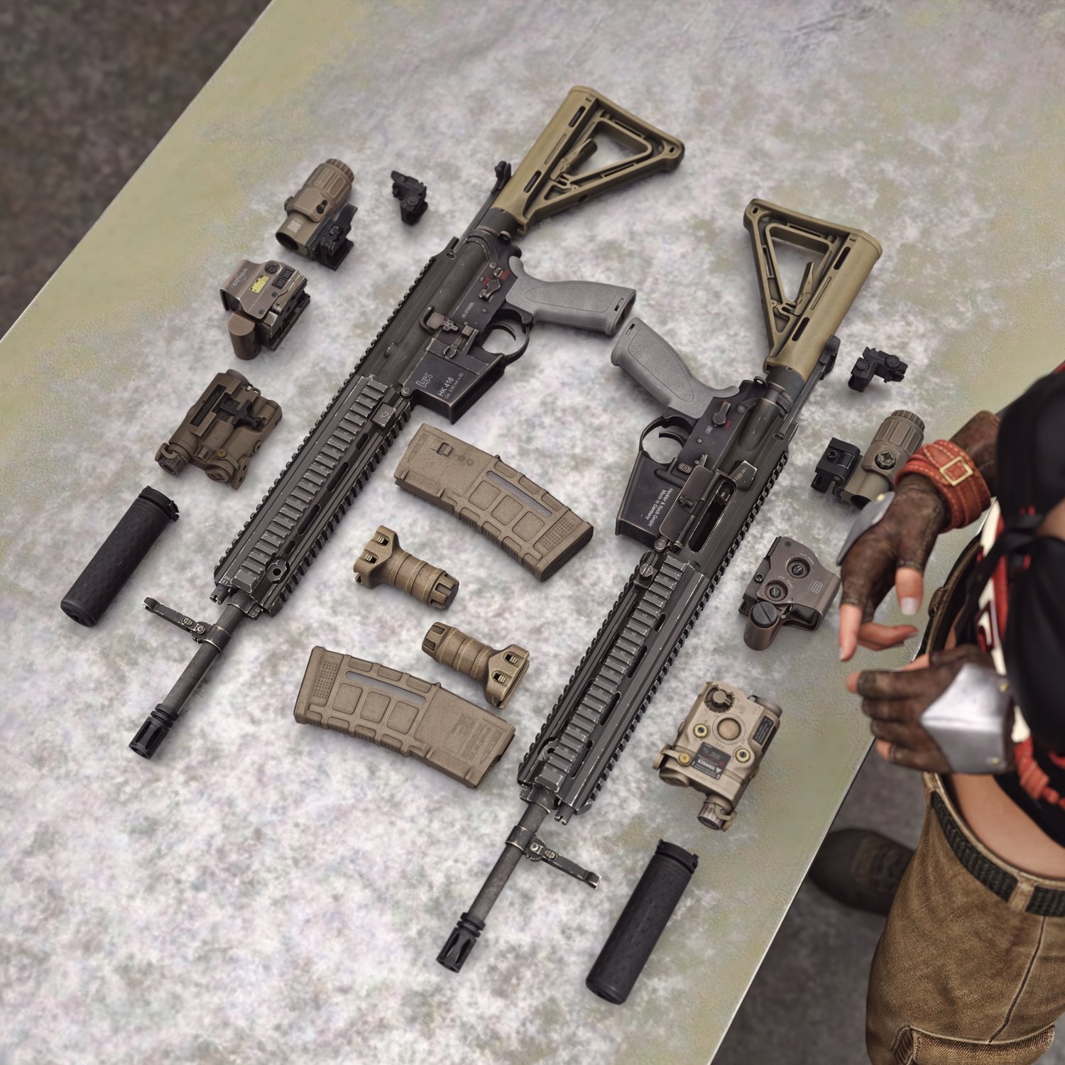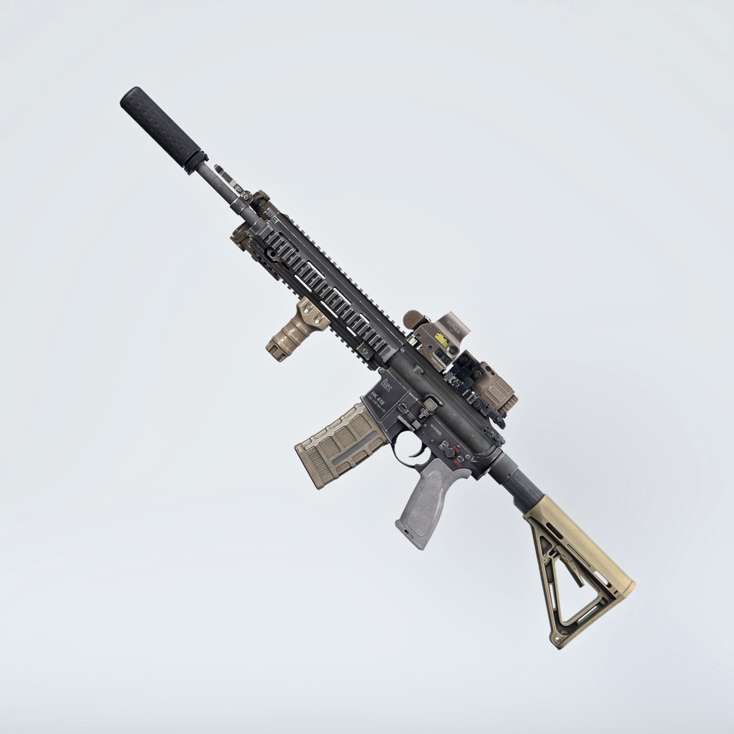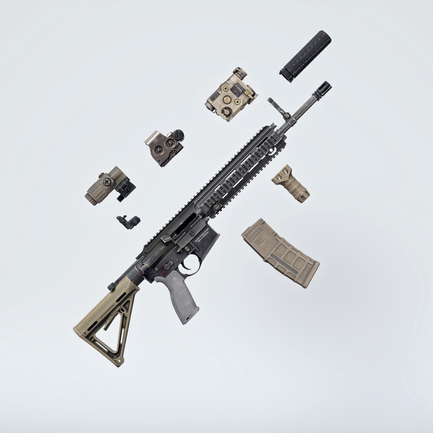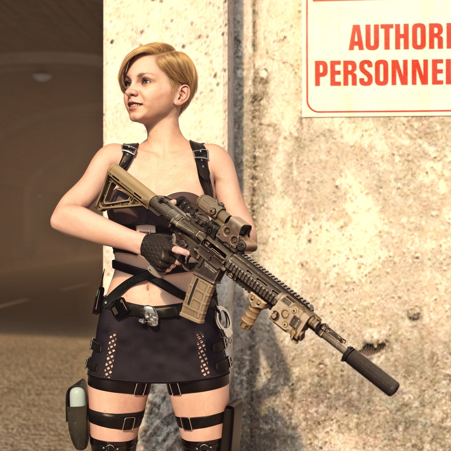 A european take on the classic AR 15 assault rifle. Short stroke M4 platform for various military applications. German military rifle, cool looking and a good performing one. Converted and rigged for use with DAZ. Trigger, safety, bolt etc also rigged for more realistic pictures. Includes a silencer, a red dot, a magnifier and some other accessories for various porpoises and pictures. Since parts are rigged, the gun can be used as just the basic configuration or an upgraded modern variant.