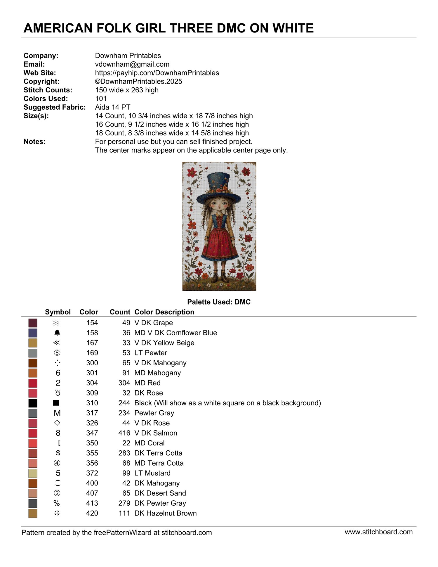 American Folk Art Girl is a gorgeous cross stitch for anyone you loves American Folk themed cross stitch patterns.