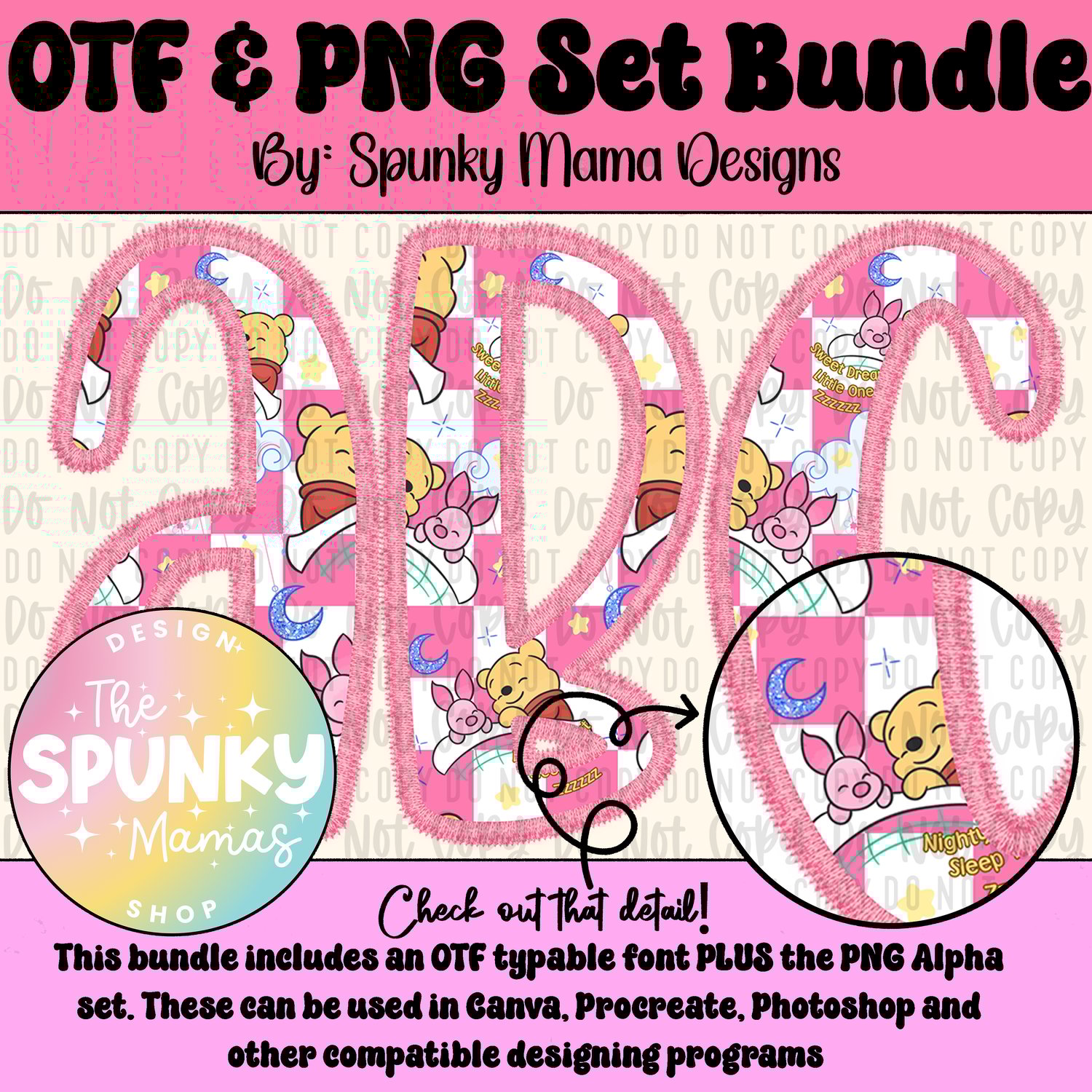 Pink Checkered Naptime Pooh Digital PNG Alpha Set