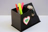 It is then glued on a black box with a leather like surface that serves as a Pen Holder.