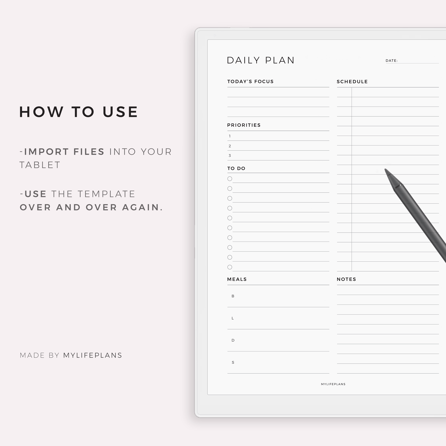Daily Planner – A modern, minimalist template that works seamlessly with a wide range of e-ink devices. Simply download, import, and start using it right away.