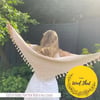 10st and 9 rows in hdc to 10cm/4in using 5.5mm hook or size needed to obtain tension. This is a guide for sizing and drape, but pattern will work if tension is different.