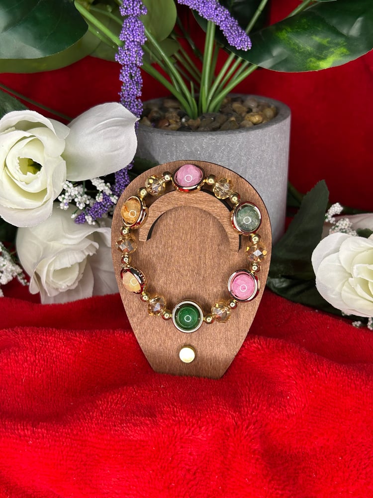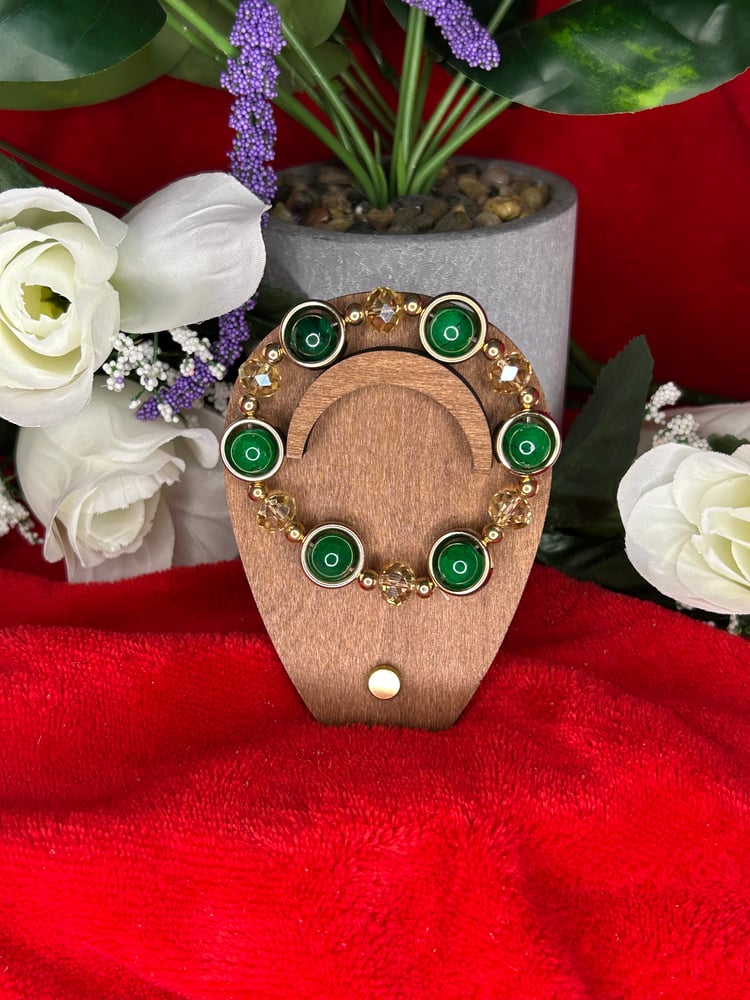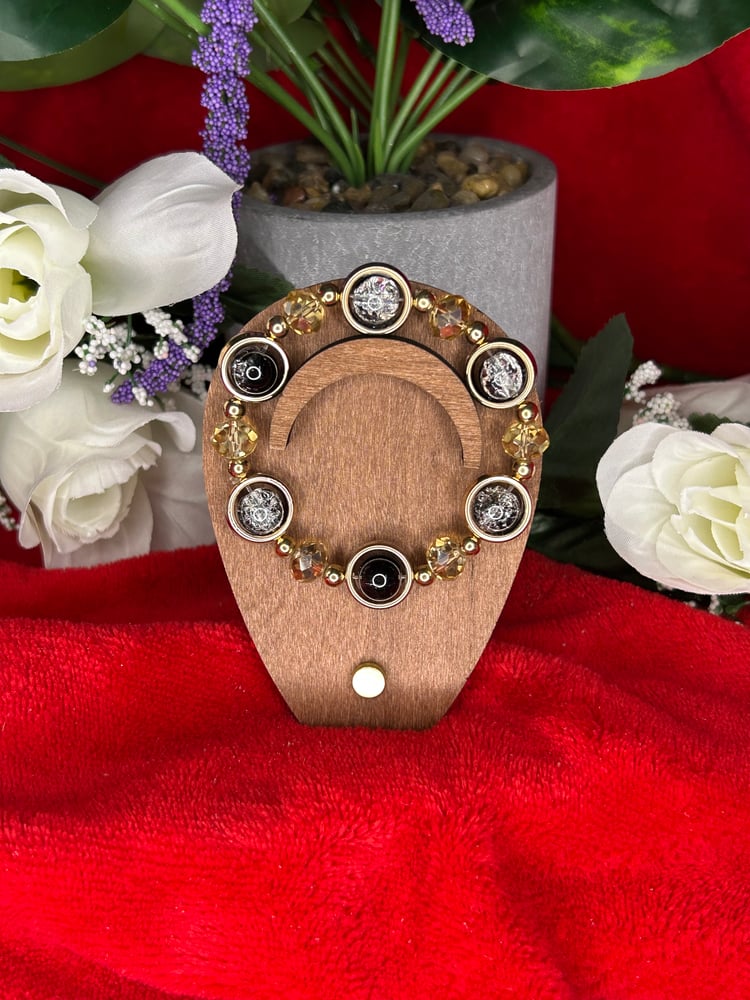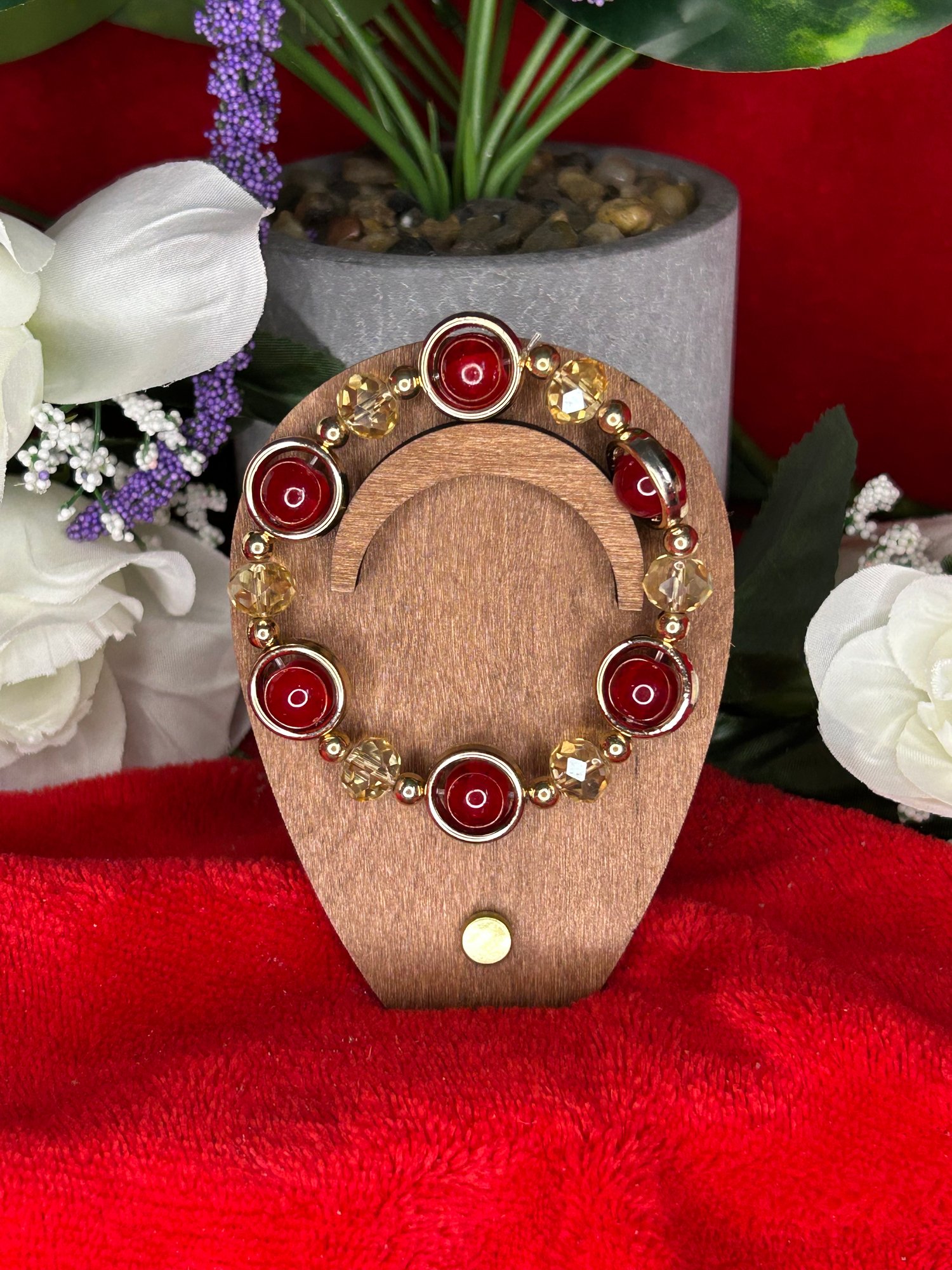 Fashion bracelet with alternating red and gold beads, bright, bold, and full of festive charm