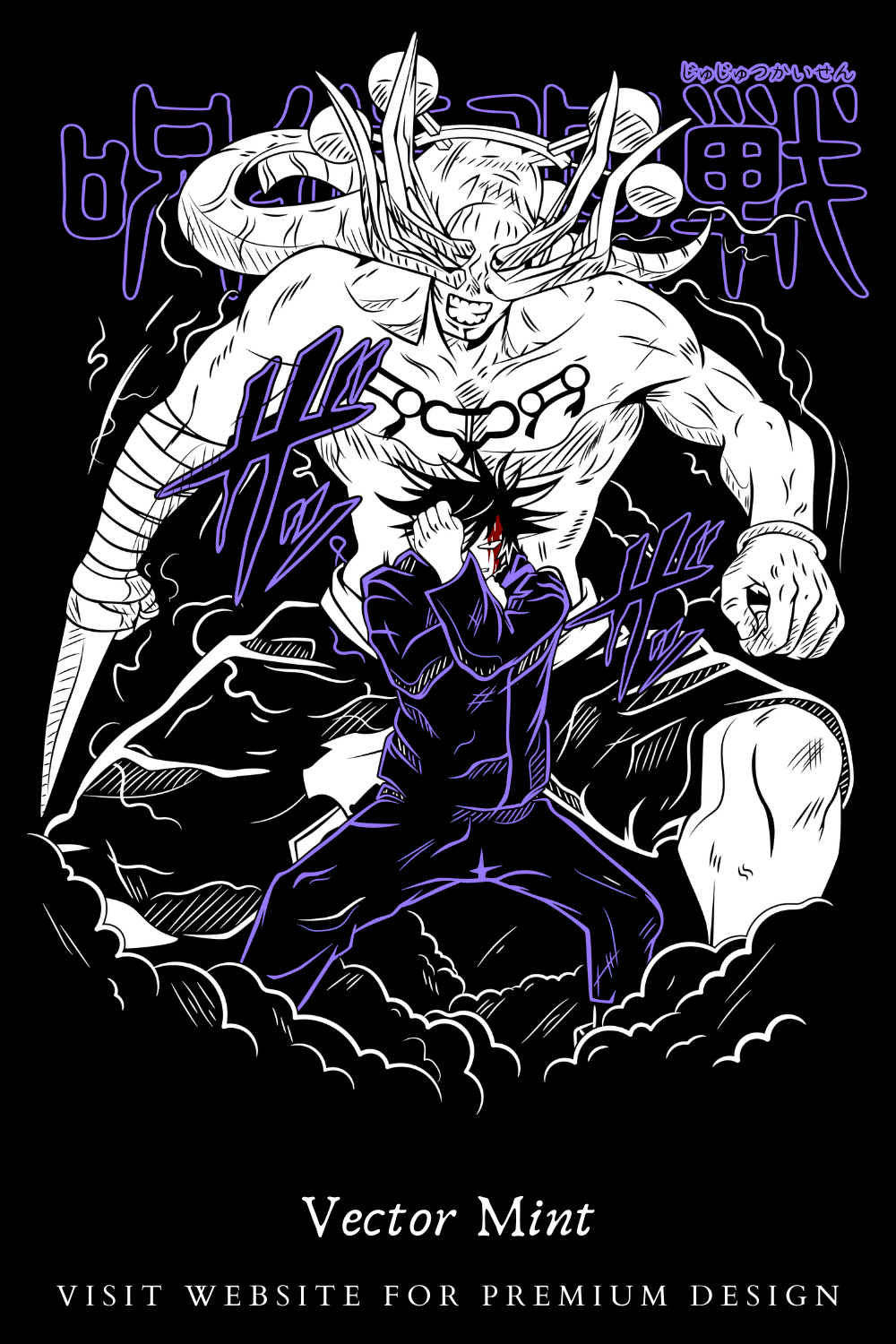 Mahoraga vs Megumi Fushiguro Jujutsu Kaisen Anime Streetwear Graphic PNG Divine Shikigami Manga T-Shirt Design