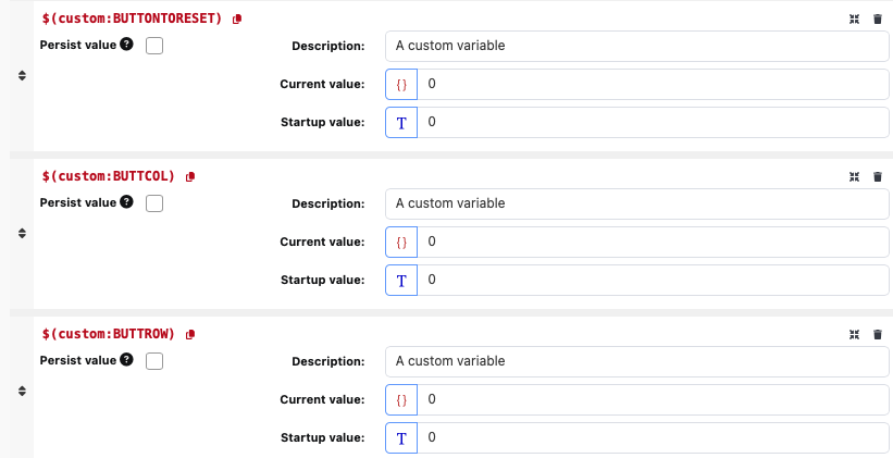· I have put these 3 x CUSTOM VARIABLES onto the COMPANION page just to show what their current values are – these buttons do not need to be shown in COMPANION at all – just there for initial reference.