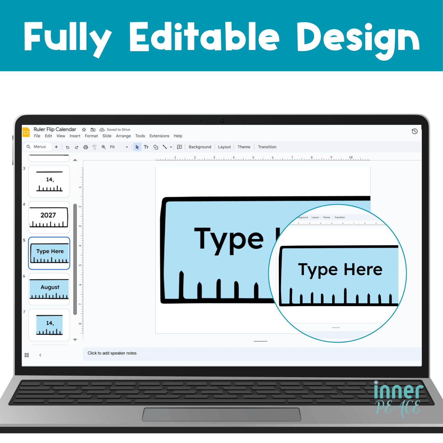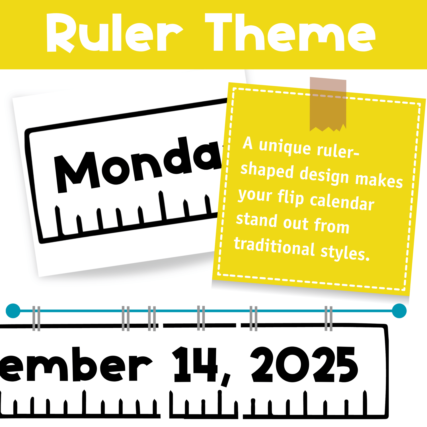 ✔ Editable ruler-shaped flip calendar pieces