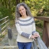 Options to alter the sleeve length, cuff circumference and body shape are included within the pattern. German short rows are used to shape the neckline before and after the yoke pattern is completed.