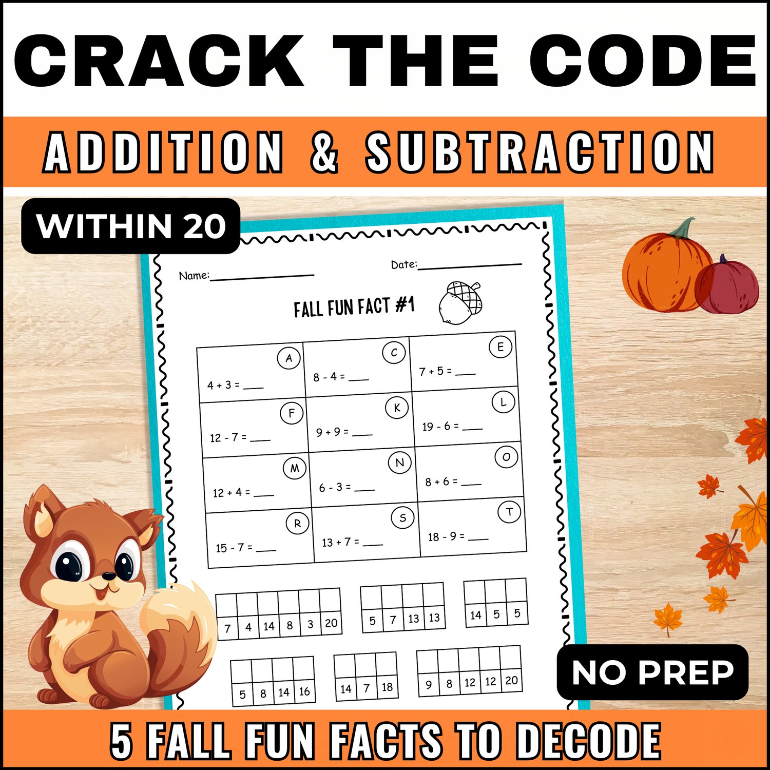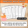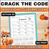 Fall Crack the Code Cryptogram Fun Facts Math Addition & Subtraction within 20