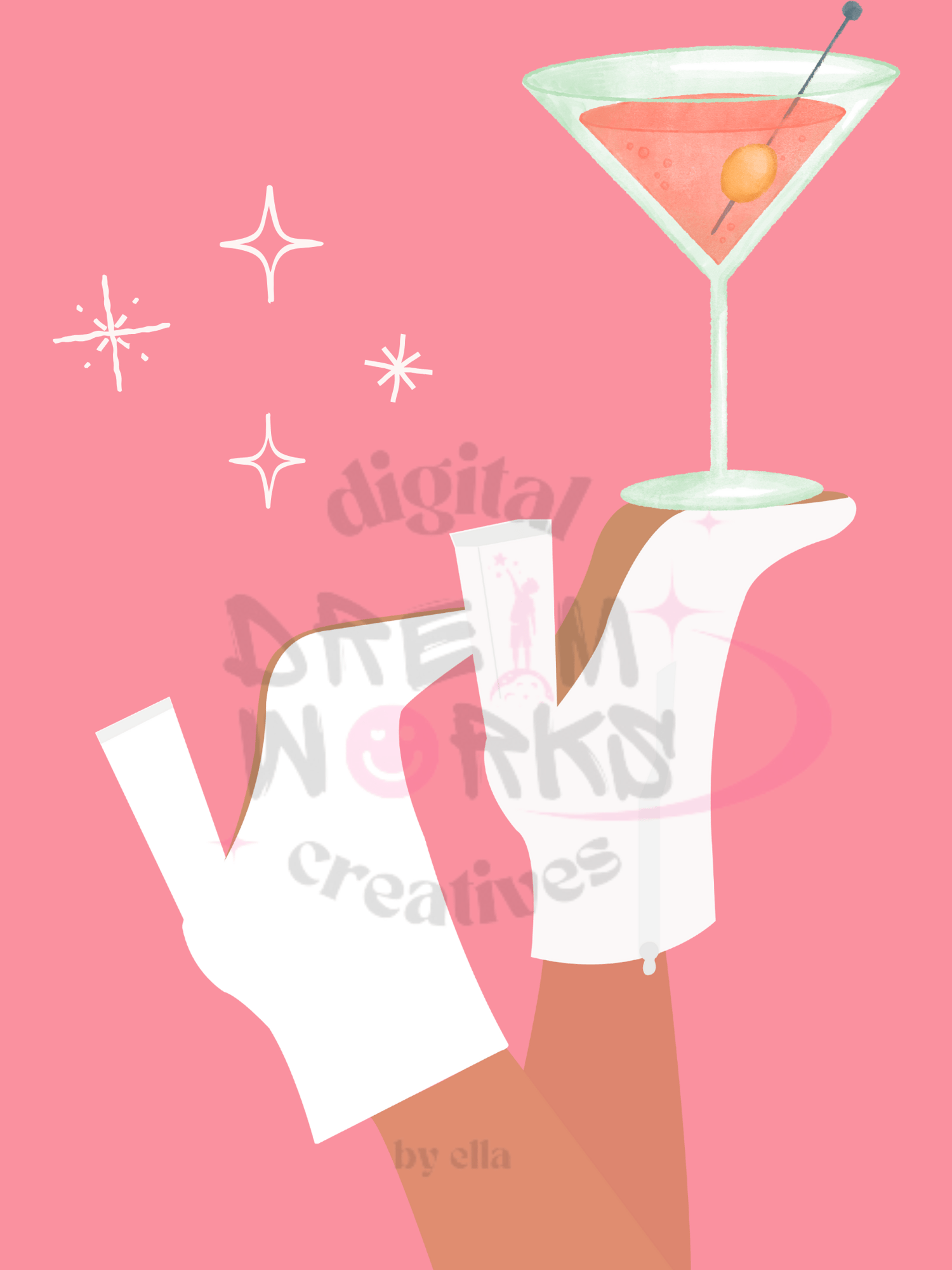 Whether displayed in a chic lounge, trendy cocktail bar, or stylish living space, this poster serves as a whimsical ode to the beauty of spontaneity and the allure of upside-down glamour.