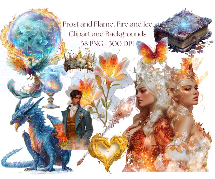 102 PNG images - 90 clipart elements and 12 backgrounds
