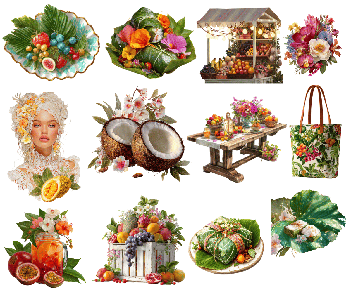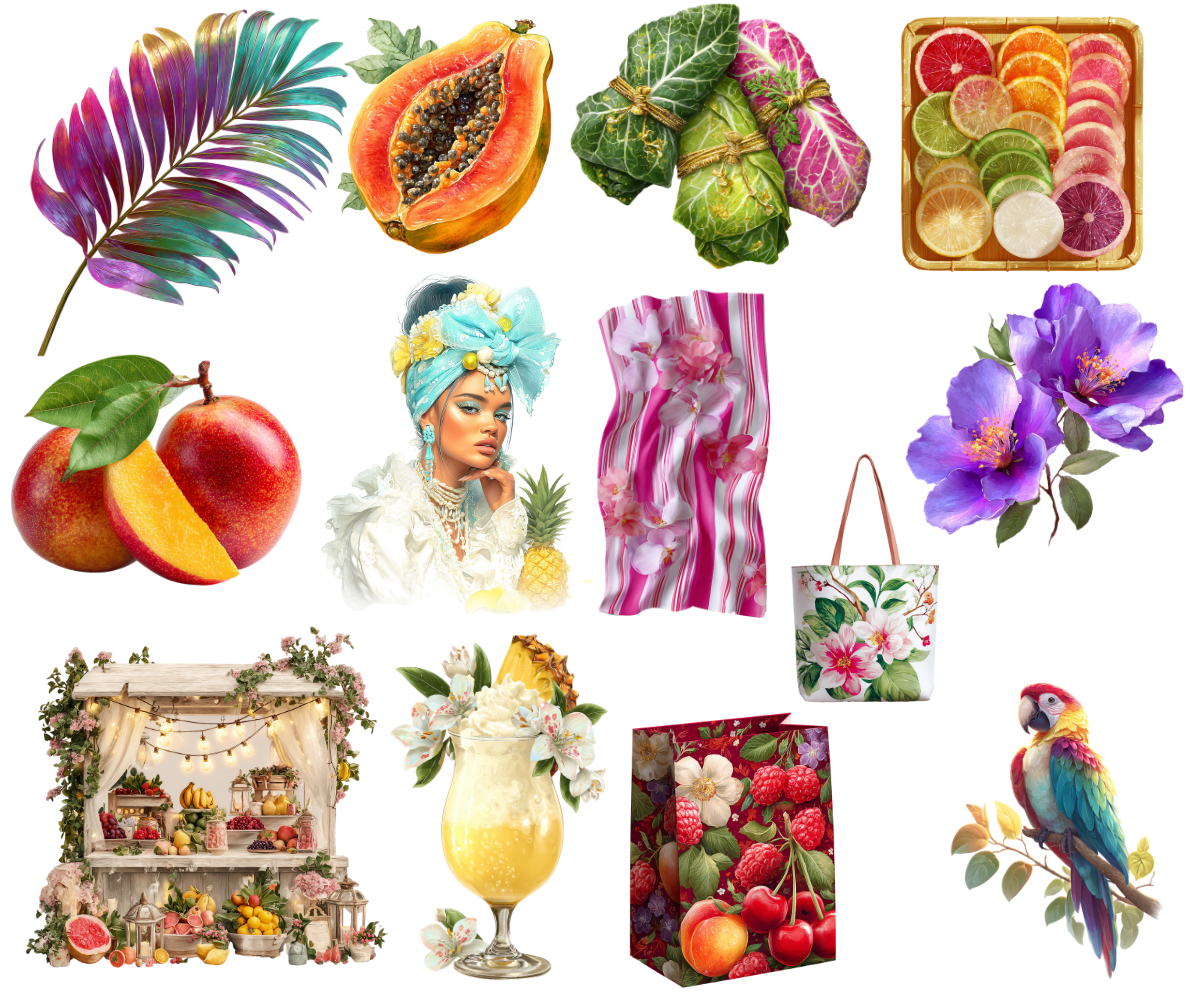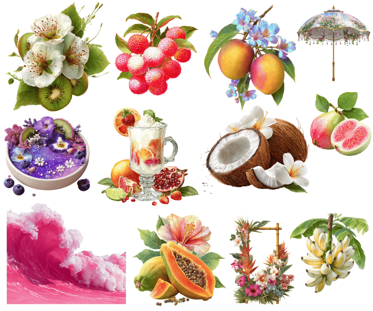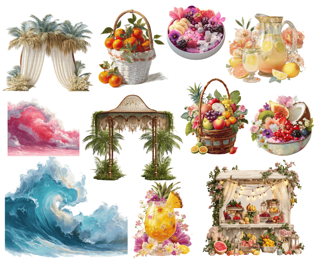 Elevate your crafting projects with our Tropical Fruit Stand Clipart and Backgrounds. Perfect for instant download and sublimation design. Clipart includes elegantly styled elements suitable for crafting projects in gorgeous rich tones evocative of the fruity and fresh aesthetic. Ideal for digital art, printable clipart, and crafting, this set is a must-have for creating charming arts and crafts designs. In fact, cut them out and place them on your planners to make for an extra special gift for an organizer.