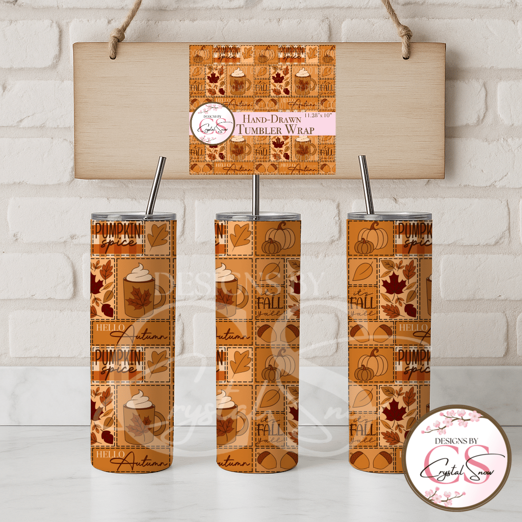 Pumpkin Spice Fall Patches Tumbler Wrap | Cozy Autumn 20oz Digital Download