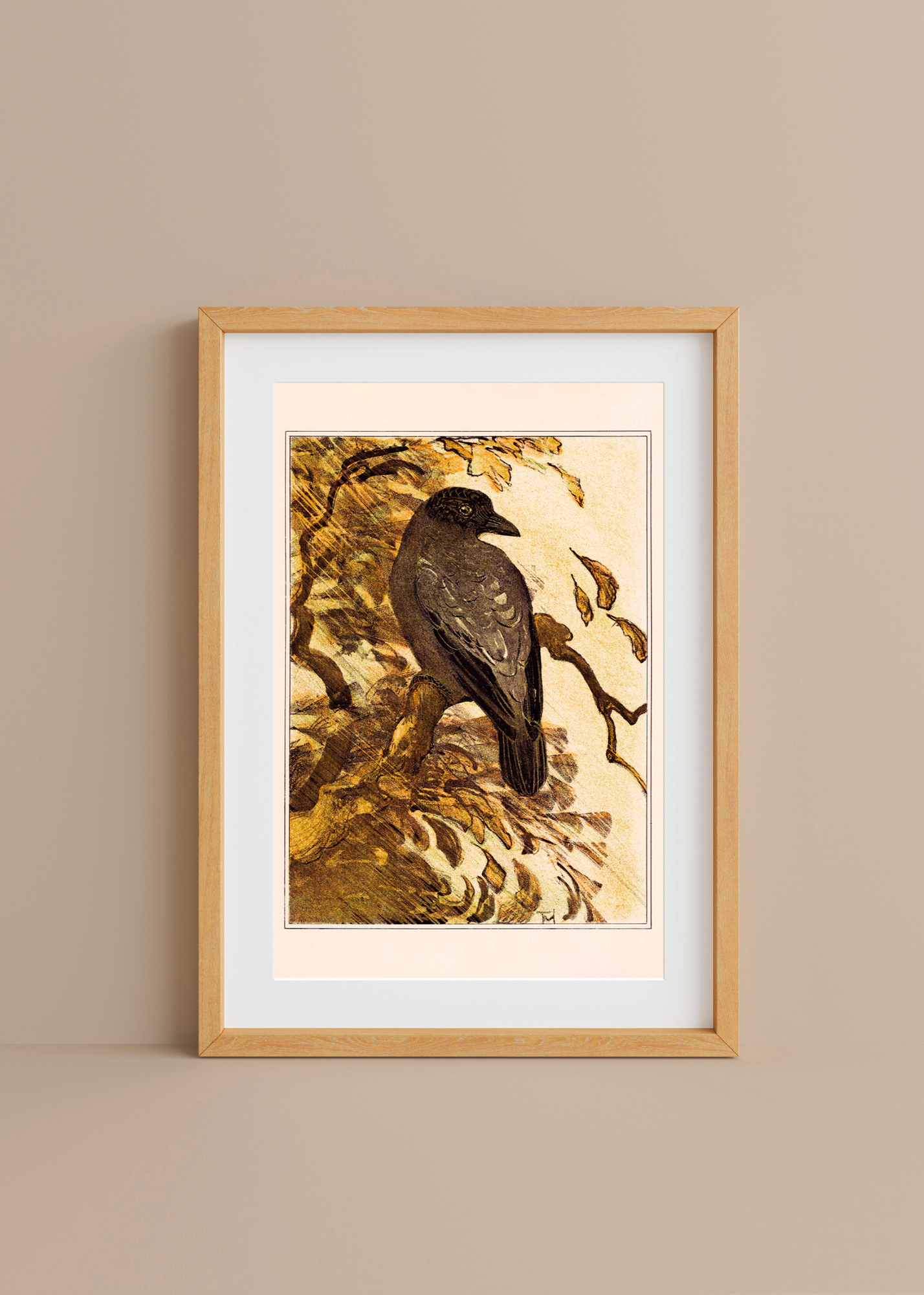 Pied Crow on a Branch— Perched in solitary grace, the hooded crow watches from its branch—silent, steady, and unbothered by time. In Pied Crow on a Branch, Theo Van Hoytema offers a quiet study in contrast: dark feathers against pale sky, stillness against the suggestion of wind. The piece carries a quiet weight, a moment suspended between motion and pause—reminding us of nature’s patience, and the quiet beauty in simply being.
