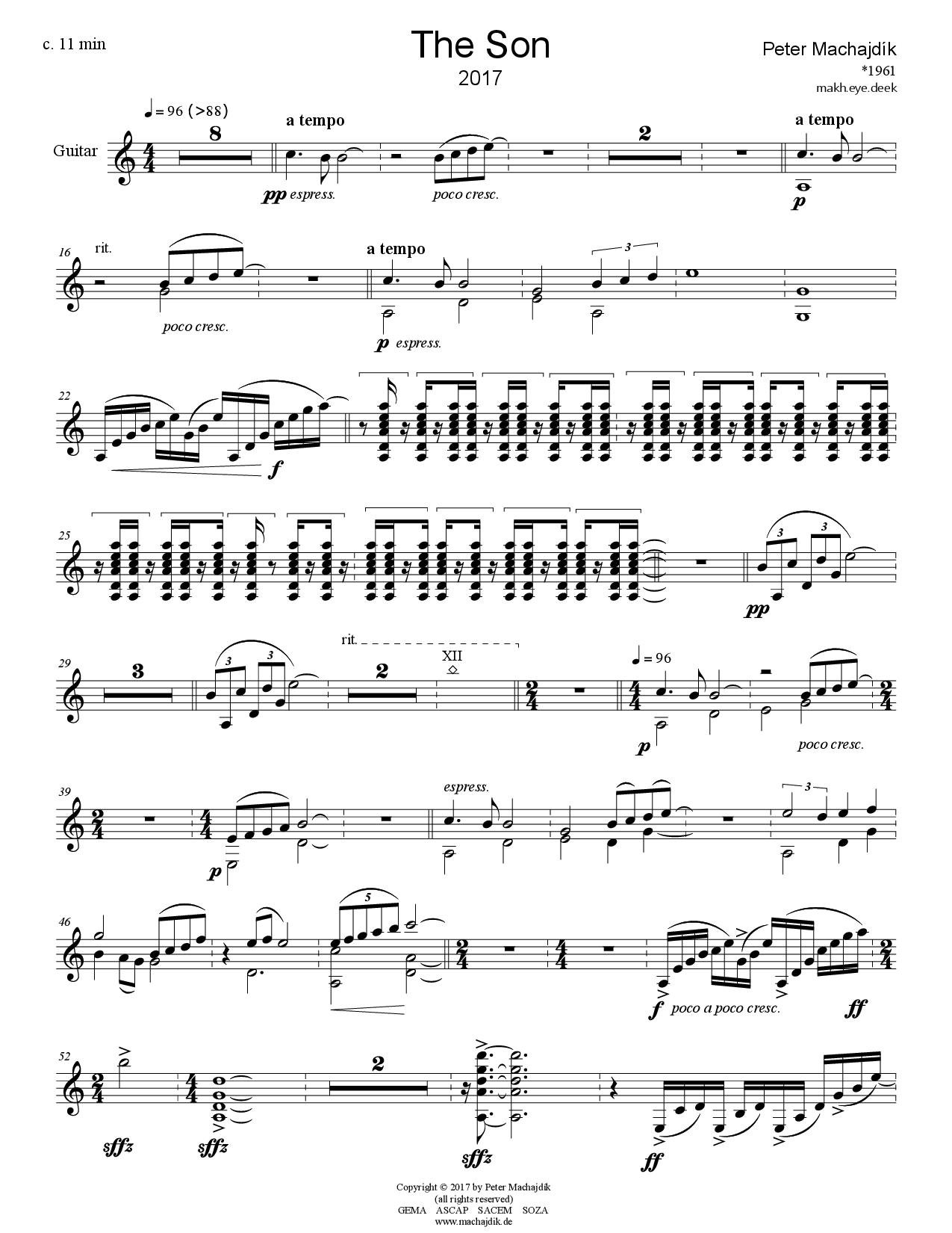 Peter Machajdík: THE SON for guitar and string quartet (Digital Sheet Music) [score and parts]