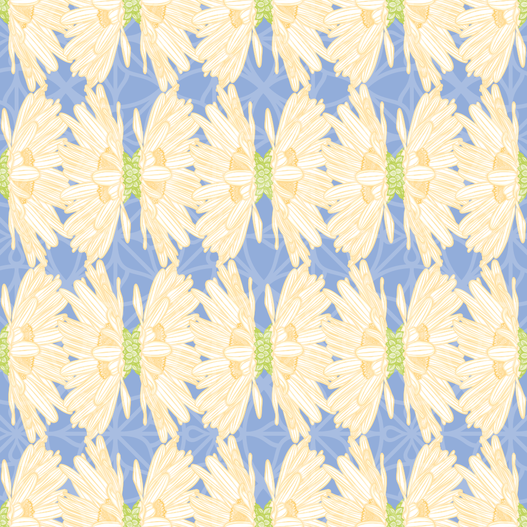 Side view daisies vector repeating pattern. Cheerful floral seamless illustration background.