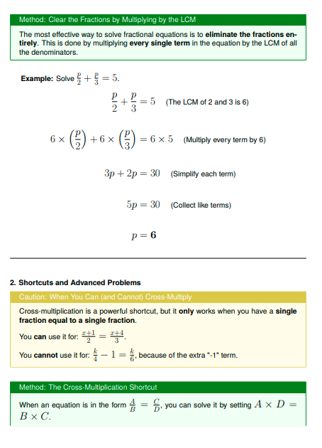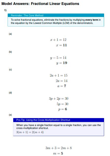 IGCSE Higher Maths: Fractional Linear Equations (Worksheet & Model Answers)