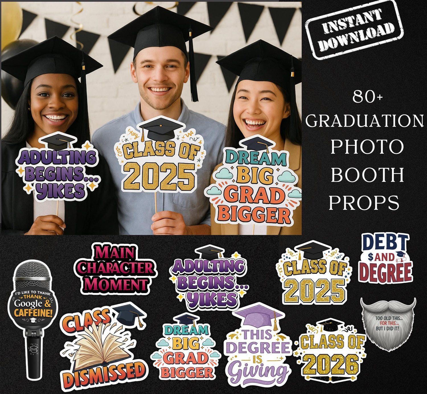 2025 Graduation Photo Booth Props Printable, Graduation Props PNG, Class of 2025 Party Decor, Graduation, Instant Download, Graduation Party