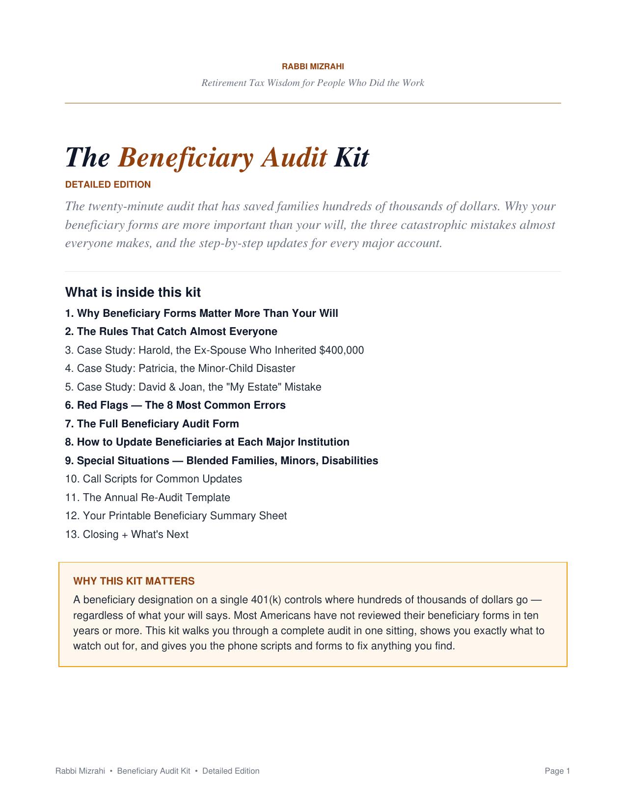 The Beneficiary Audit Kit