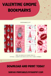 12 Valentine Gnome Bookmarks | Printable Valentine Gnome Bookmark Set | Unique Set Of Valentine Bookmarks | Gnome Bookmarks | Valentine Gnome Page Holders