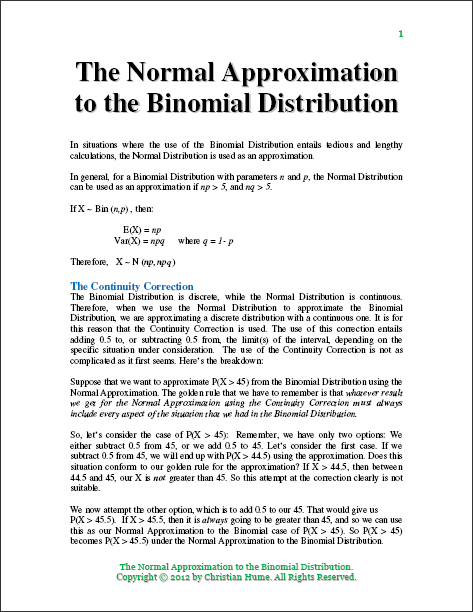 The Normal Approximation to the Binomial Distribution explained.