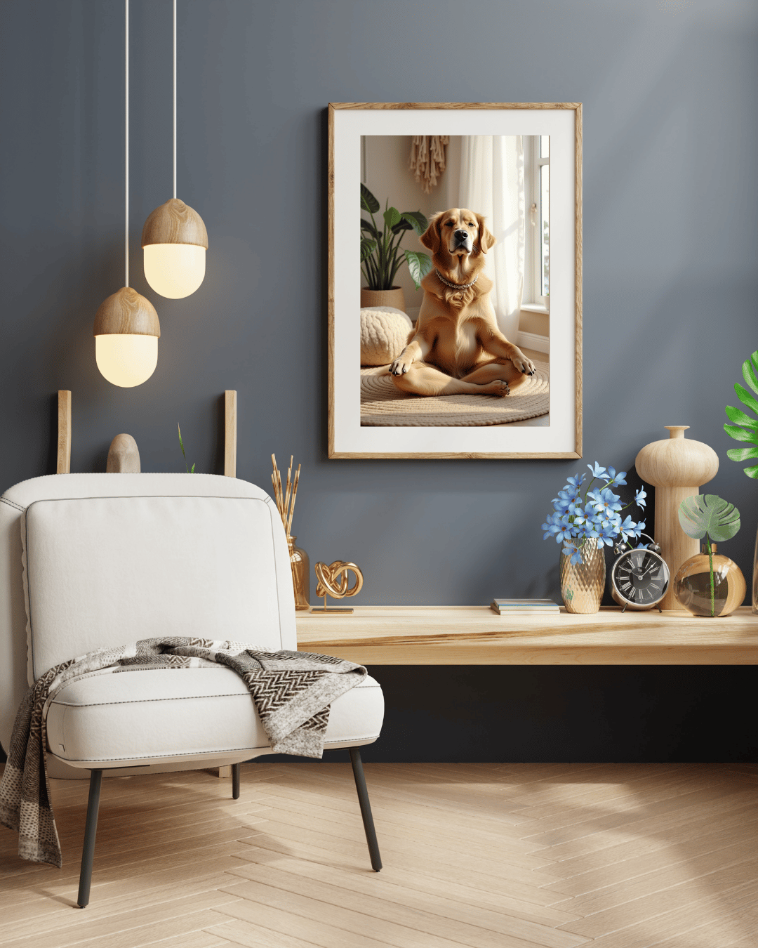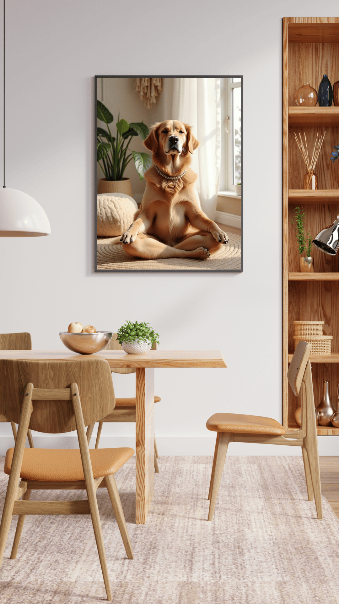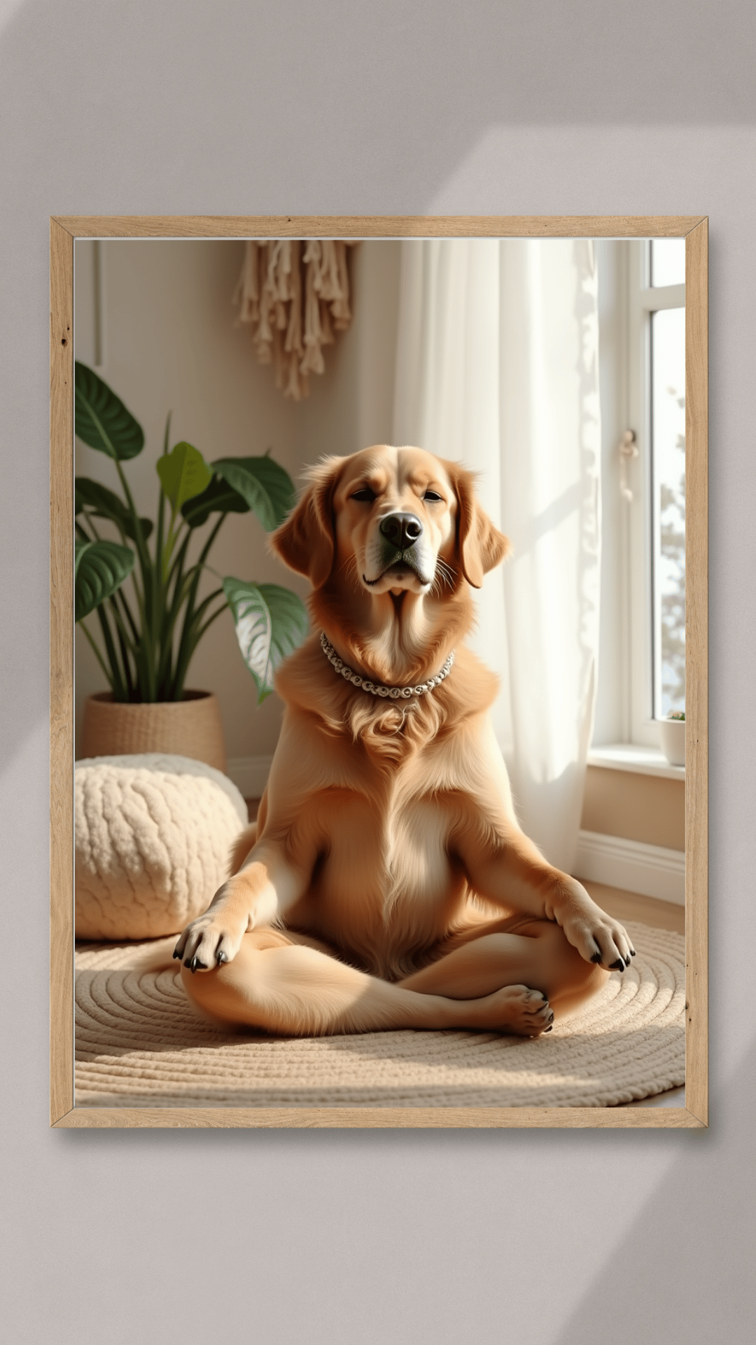 Bring calm and charm to your space with this adorable digital art print featuring a golden retriever deep in a yoga pose โ eyes closed, soul centered, and wrapped in soft boho vibes. Perfect for anyone who loves dogs, mindfulness, or playful art with a peaceful twist.