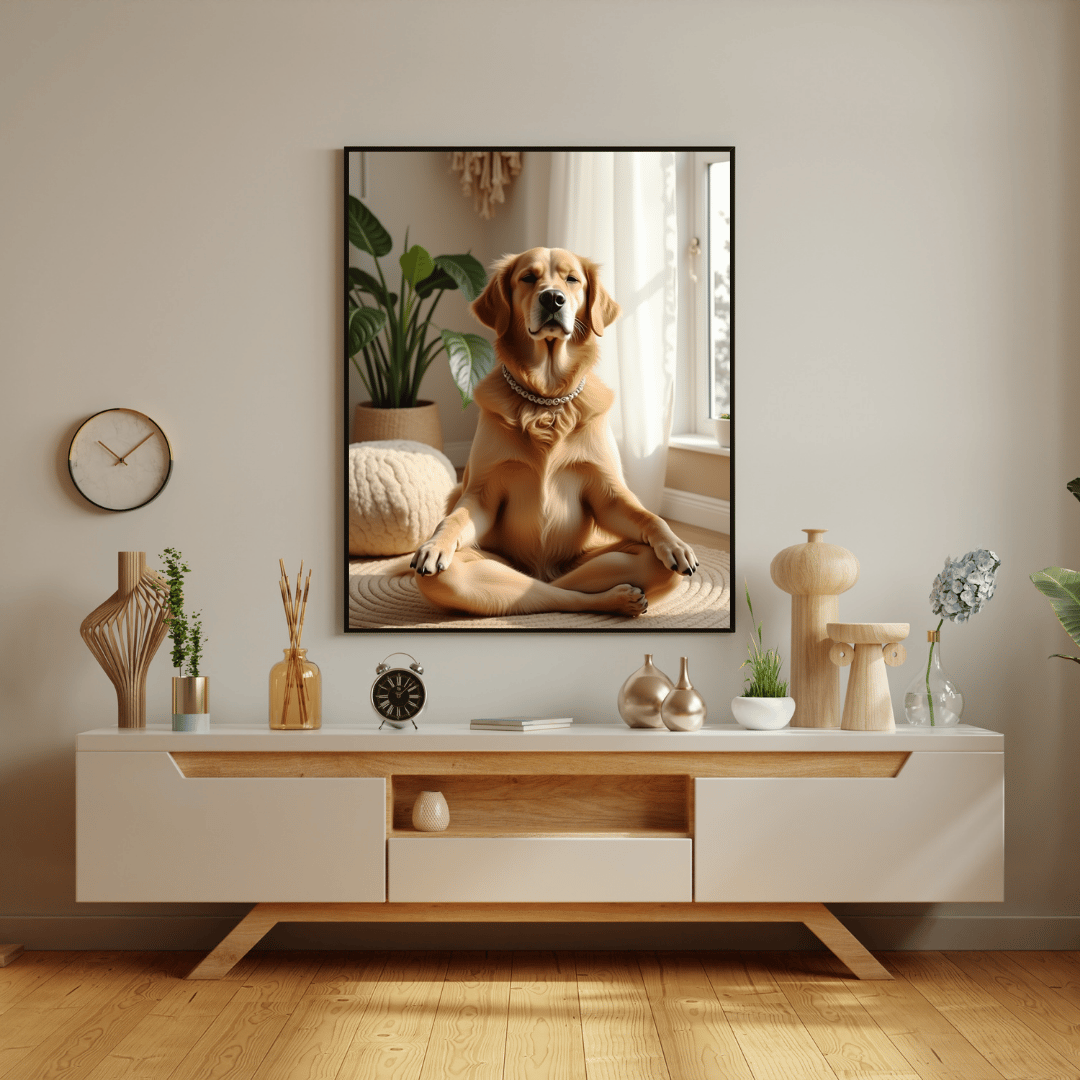 Whether you're curating a cozy home studio, decorating your wellness room, or gifting a fellow yogi and dog lover, this AI-generated art will add a lighthearted, calming energy to any space.