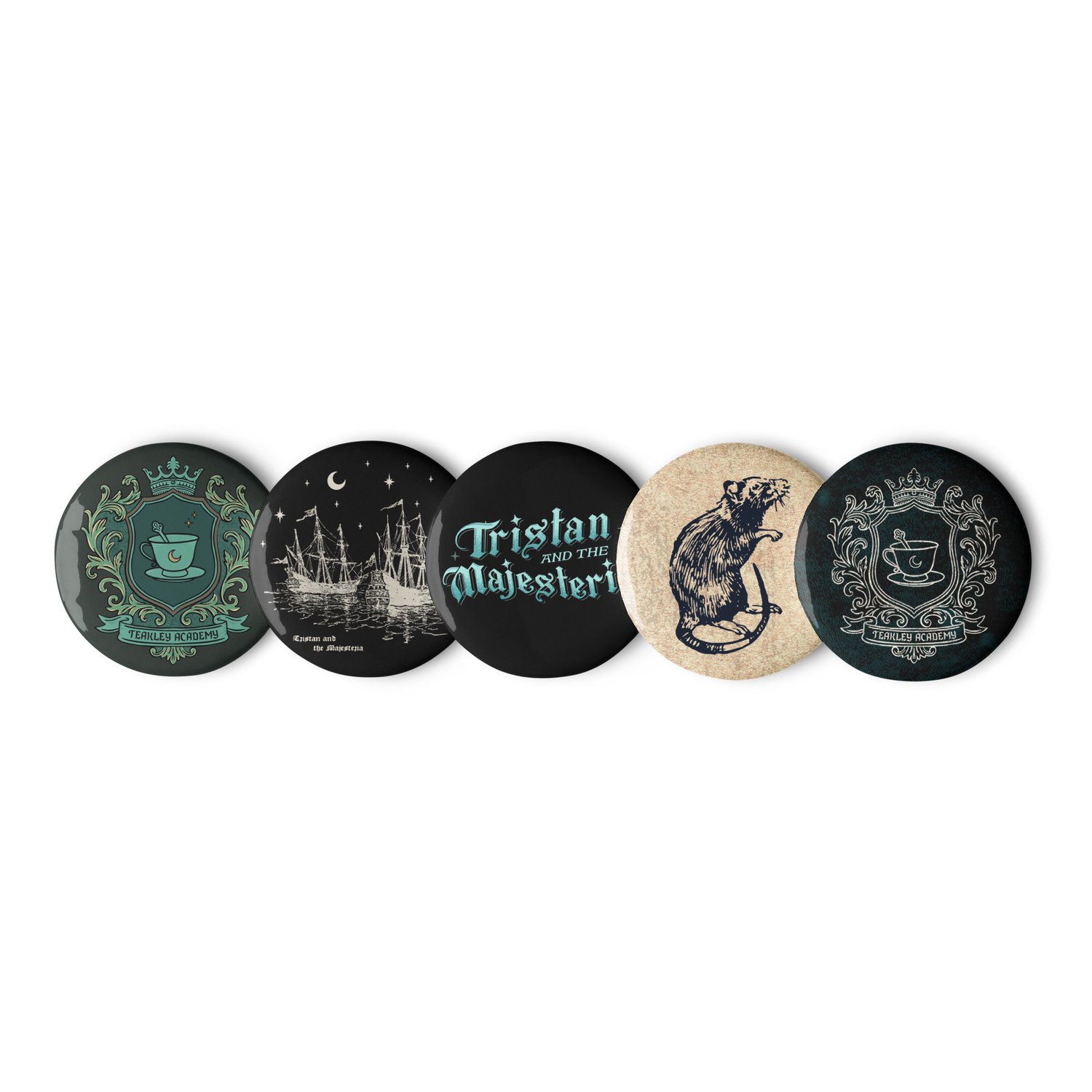 5 Assorted Pin Designs inspired by the novel TRISTAN AND THE MAJESTERIA