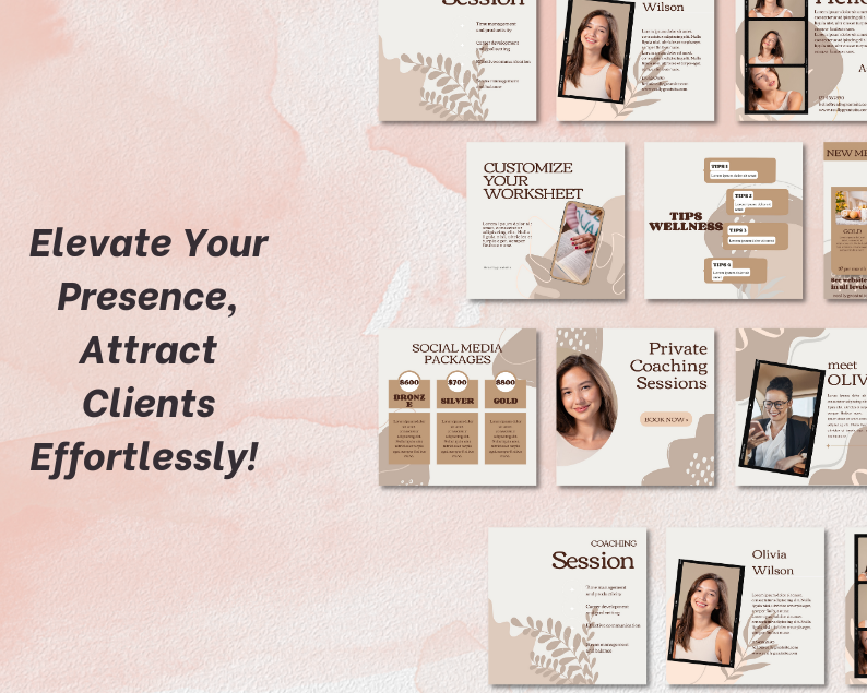 In today's digital landscape, social media is your gateway to connecting with a wider audience and establishing your reputation as a trusted wellness coach. Our Canva templates empower you to create engaging social media posts that pique curiosity, spark conversations, and effectively promote your services.