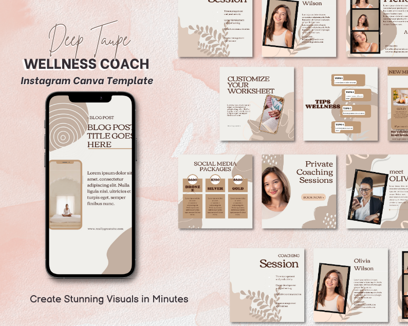 Deep Taupe Social Media Canva Template for Wellness Coach, Design Like a Pro and Engage Your Audience