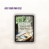 Designed with soft sage green tones, natural textures, and calming details, this soothing home office setup features eucalyptus sprigs, neutral accessories, and a warm cup of tea to bring a sense of calm to your social posts, planners, or digital projects.