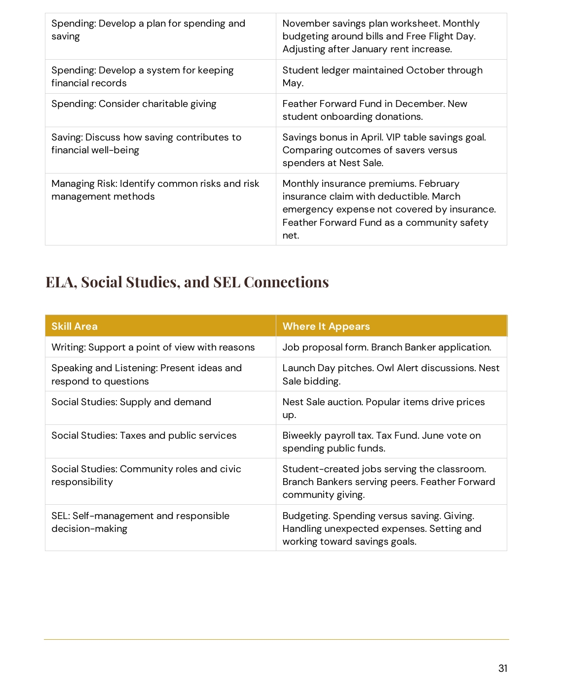 Teacher Guide: Opens with a Quick-Start section to get your economy launched, then walks you through the entire school year month by month, October through June. Every announcement scripted. Every discussion question written. Every step laid out.