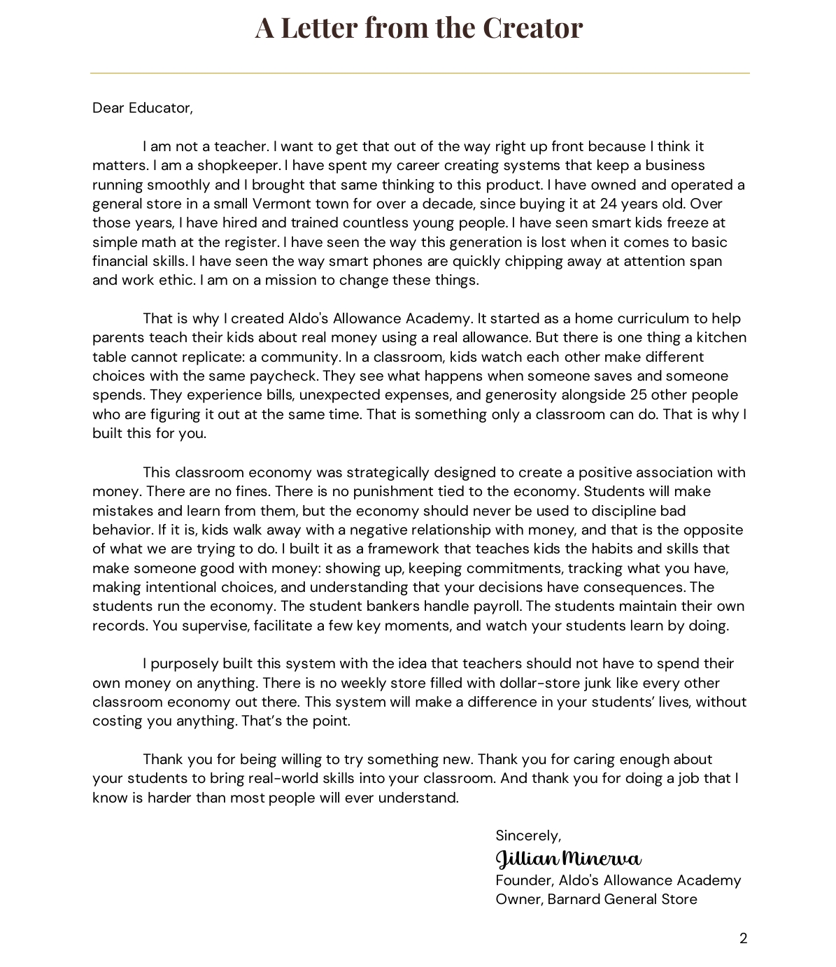 I have owned a general store in Vermont for over a decade. I have hired and trained countless young people and I kept seeing the same thing: smart kids with no concept of earning, saving, or budgeting. Kids who had never made a real financial decision in their lives. Not because they were not capable, but because nobody gave them the practice.