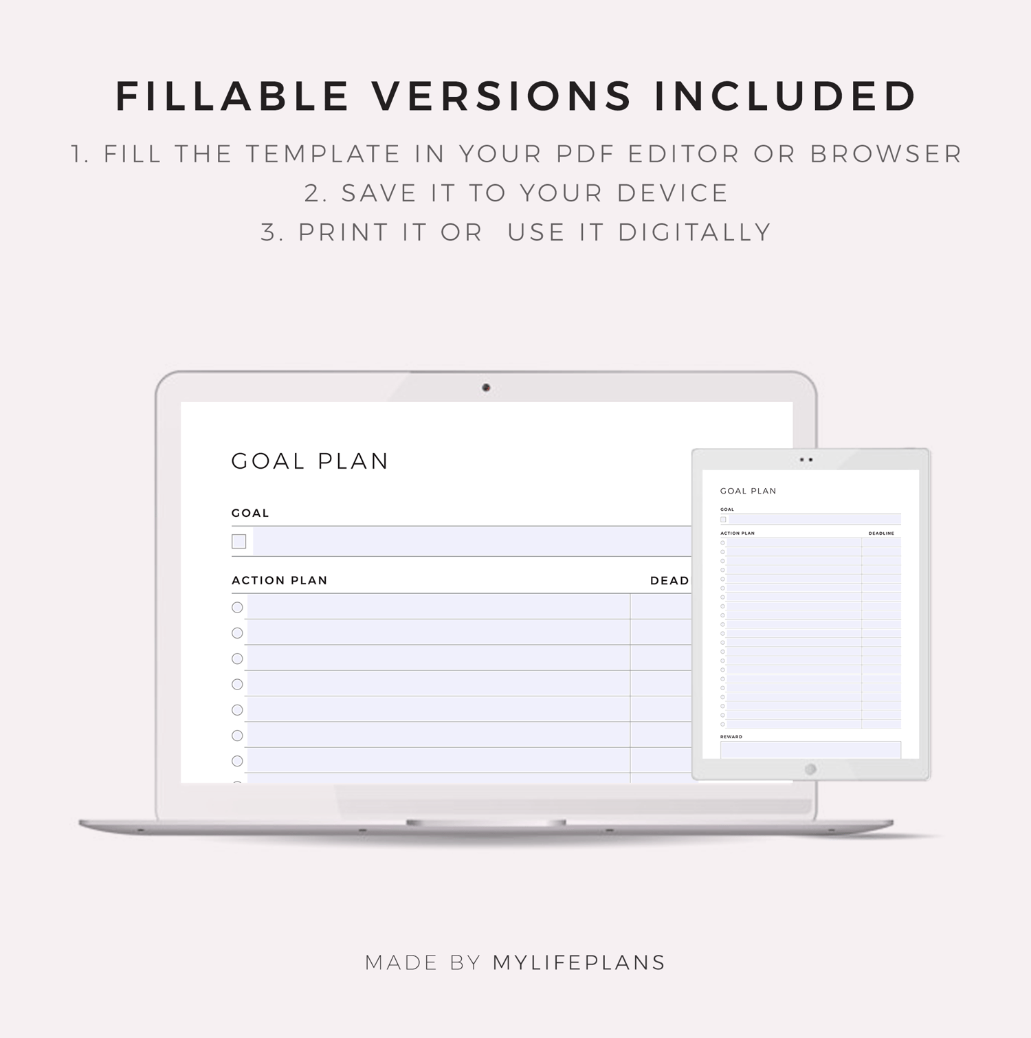 This is a printable goal planner — just download, print, and start using it right away.