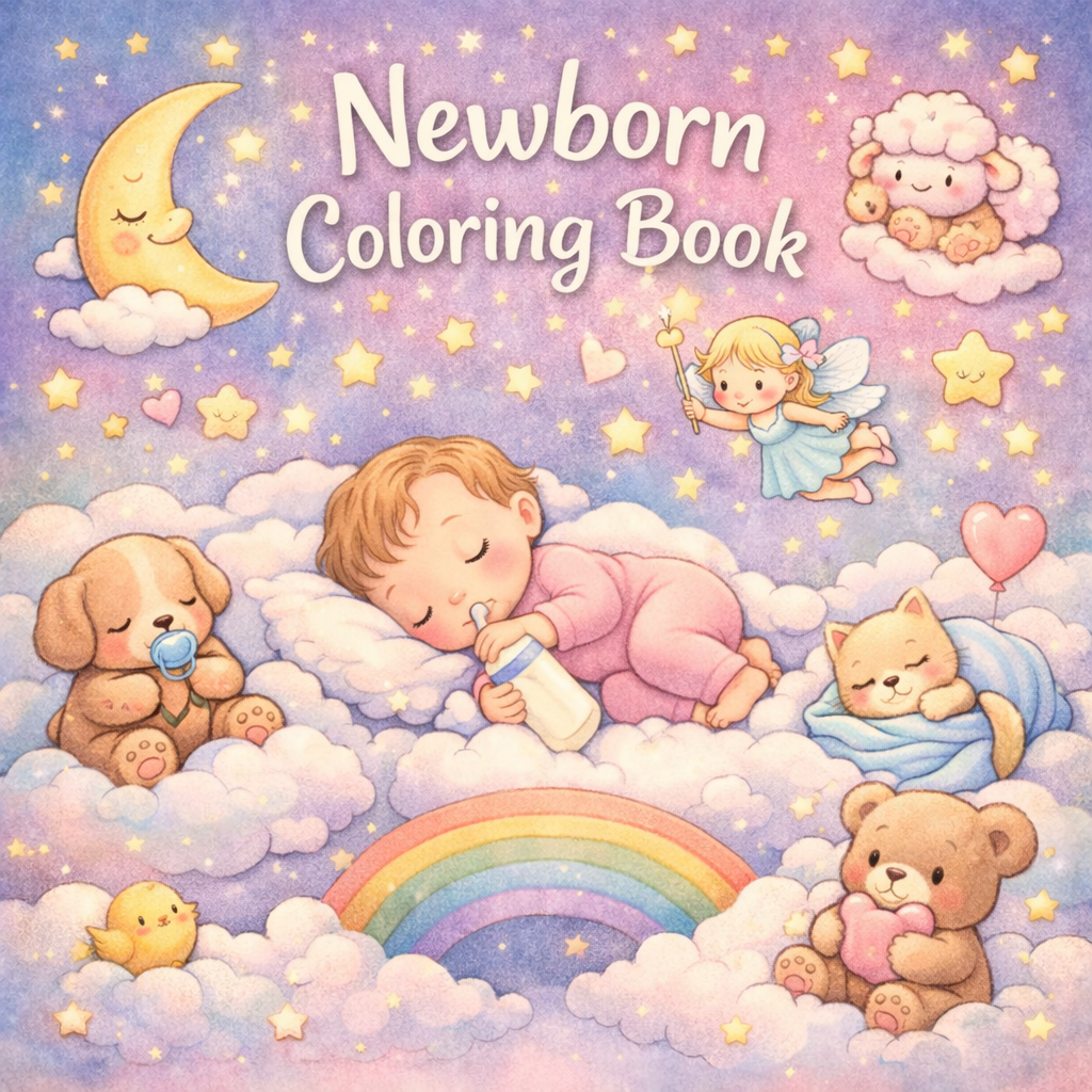 Newborn, coloring ebook, 64 designs, digital product, instantly download