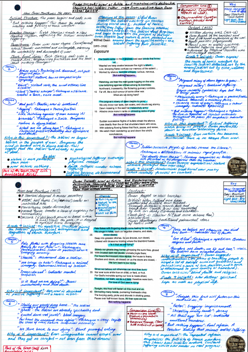 A detailed two-page A3 annotated model of Wilfred Owen’s Exposure designed to replicate live GCSE poetry annotations. Part of The Exam Shelf Live Annotated GCSE Series.