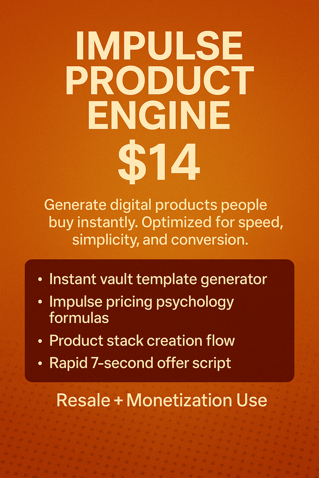 Generate digital products that people buy instantly. This vault system is optimized for speed, simplicity, and conversion.