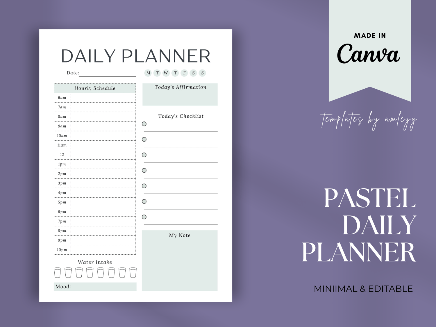 Pastel Daily Planner Template for Canva – Printable Minimalist Daily Planner Template, Schedule Organizer, Productivity Planner, Aesthetic Daily Sheet