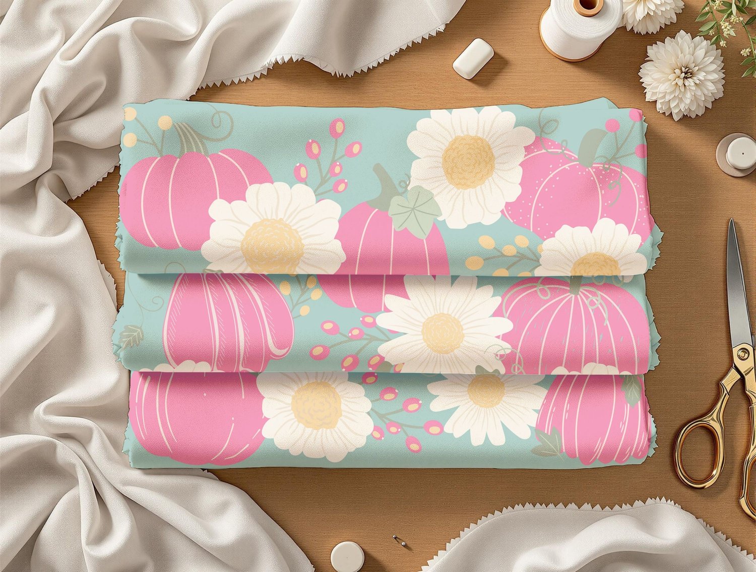 Bring a playful, feminine vibe to your autumn creations with this chic pumpkin floral pattern.