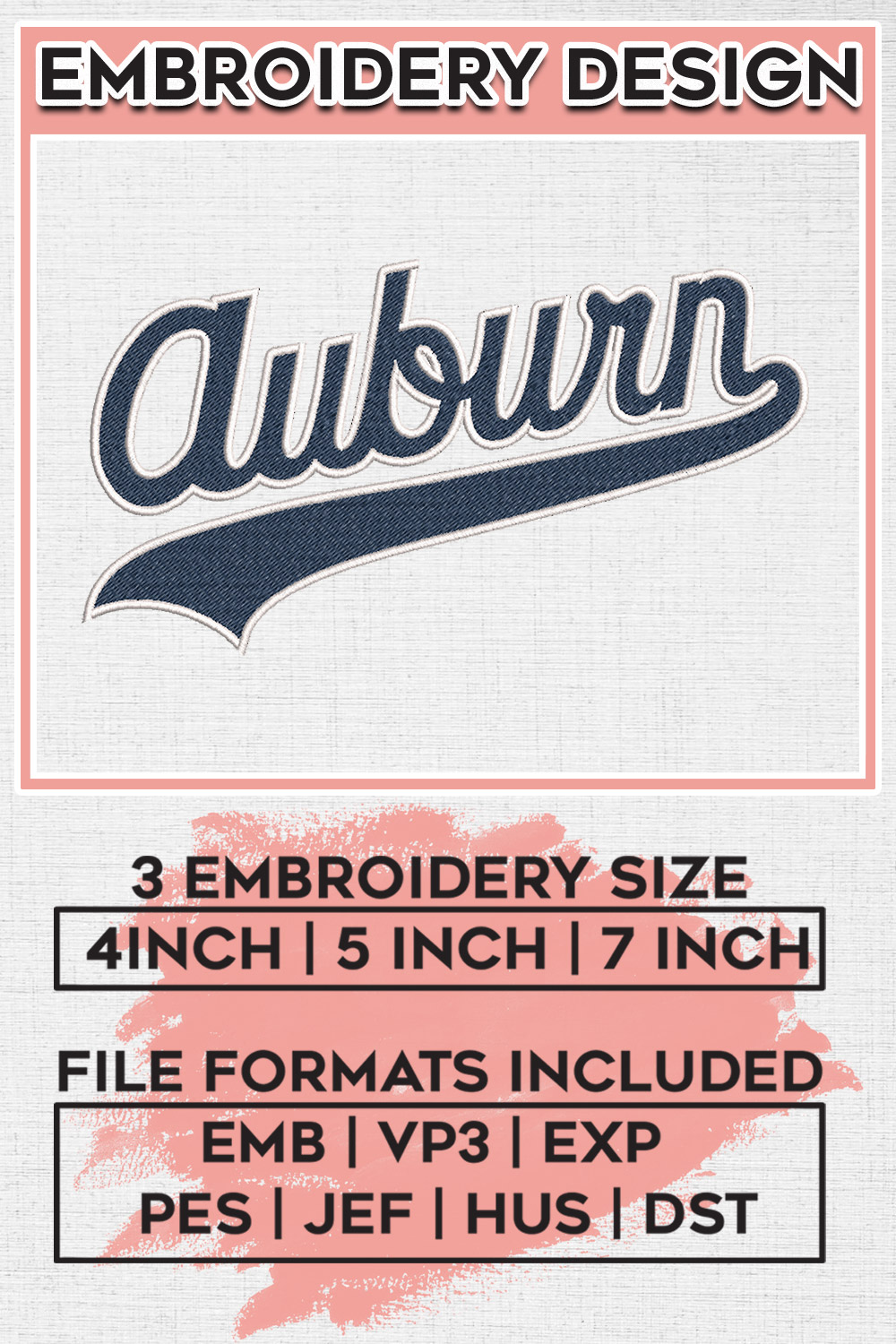 Auburn College Football Team Wordmark Logo Embroidery Designs, NCAA Auburn Tigers Machine Embroidery Files, NCAA Logo embroidery designs, NCAA Auburn Logo, Digital Download