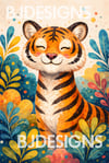 This adorable safari animal wall art set features a smiling tiger, cheeky monkey, and sweet panda surrounded by vibrant botanical leaves and playful confetti details. Designed in a soft watercolor storybook style, these prints create a warm, happy atmosphere perfect for nurseries, playrooms, and toddler bedrooms.